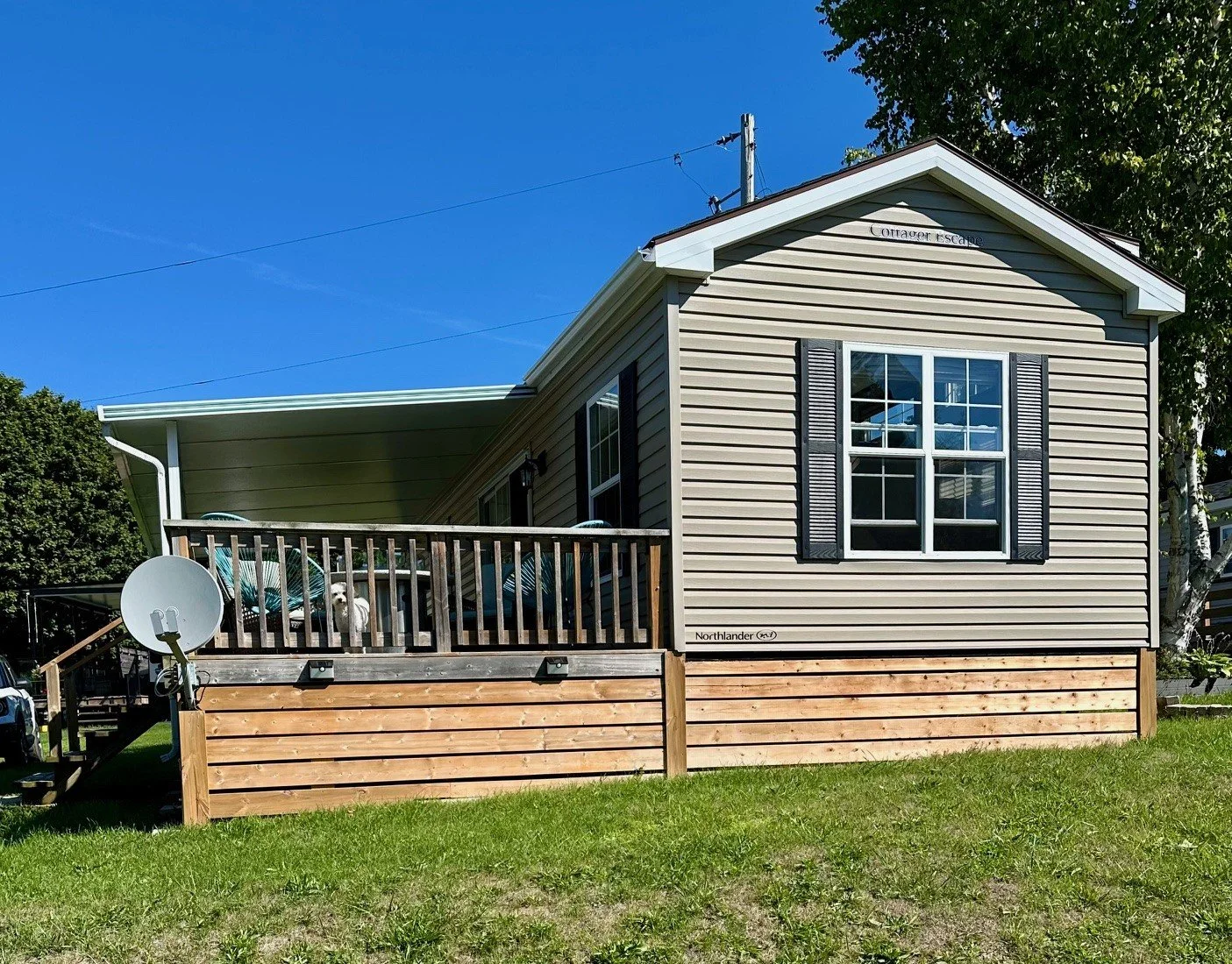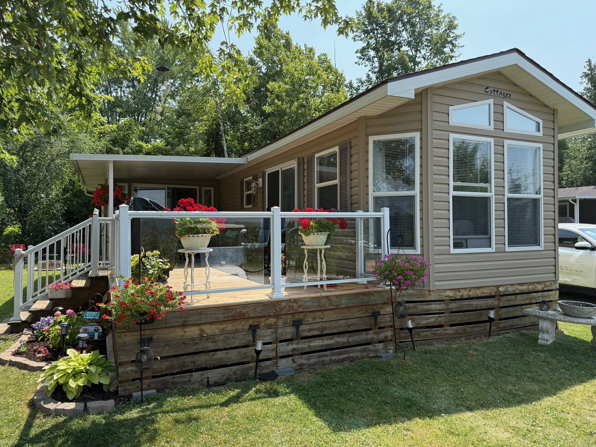 40’ 1 bedroom unit situated on a large lot with mature trees. Open floor plan and high ceilings. Bright front living room. Bedroom at the back with plenty of storage. Full length deck, perfect for entertaining!